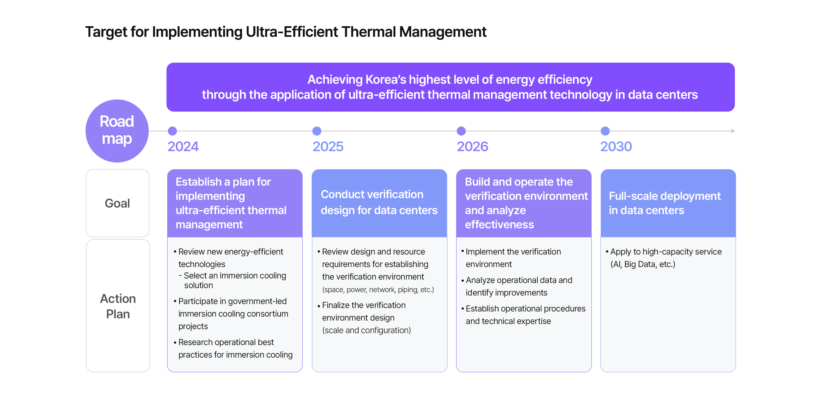 As AI technologies continue to advance, data center power consumption is steadily rising due to the increasing computing resources required to train and operate AI models, as well as the expansion of data-intensive services such as cloud computing, IoT, and streaming platforms. To respond to this trend, LG CNS is accelerating the adoption of ultra-high-efficiency thermal management teghnology, Immersion Cooling, to build environmentally friendly data centers that serve as core infrastructure for future technologies, including AI, Big Data, and IoT. We are systematically establishing verification environments to assess the technology’s ability to effectively manage heat generated by high-performance computing systems while maximizing energy efficiency. Through these efforts, LG CNS is validating performance and stability, securing operational capabilities, and preparing for full-scale deployment.