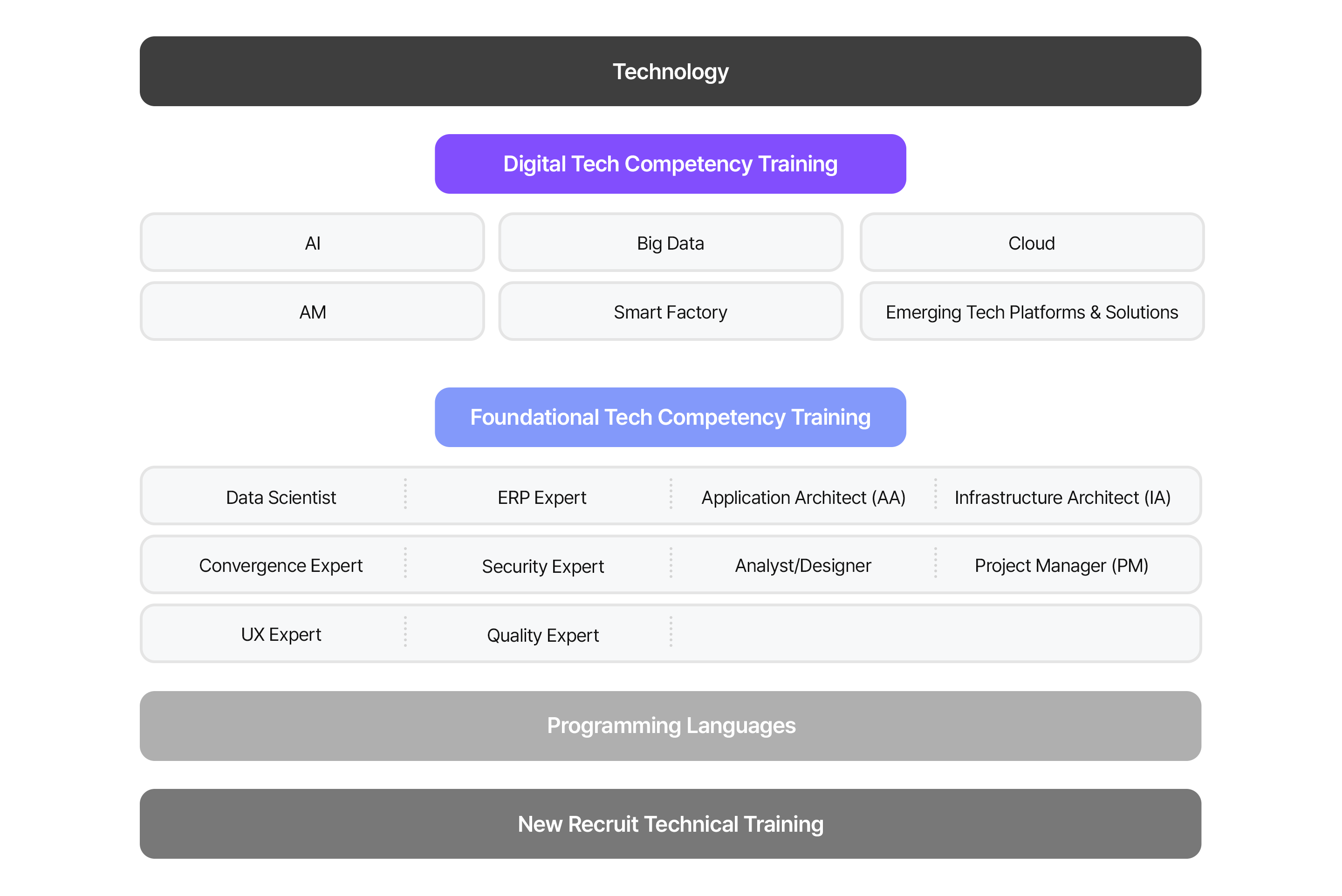• Accurately certify technical talent, establish a system where experts help other experts grow, and support the expansion of the training business through differentiated training/certification services for external clients.