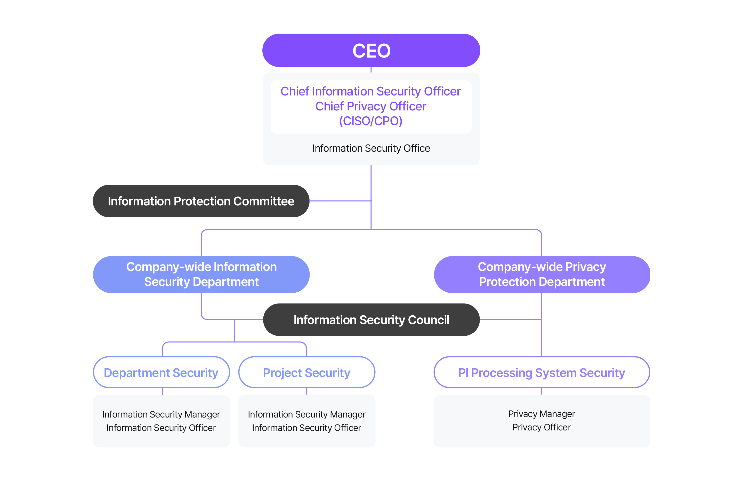 The company-wide information security and privacy departments are staffed with experts in information security and privacy, and oversee all aspects of information security while identifying various security threats and establishing response measures.