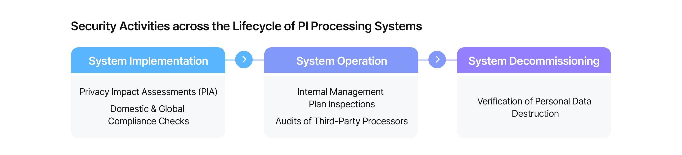 To ensure that personal information is processed safely, LG CNS conducts Privacy Impact Assessments (PIA) before introducing any new processing system. Each year, the company inspects the implementation of its internal personal information management plan, provides training for employees who handle personal information and checks the management status of its personal information processors.