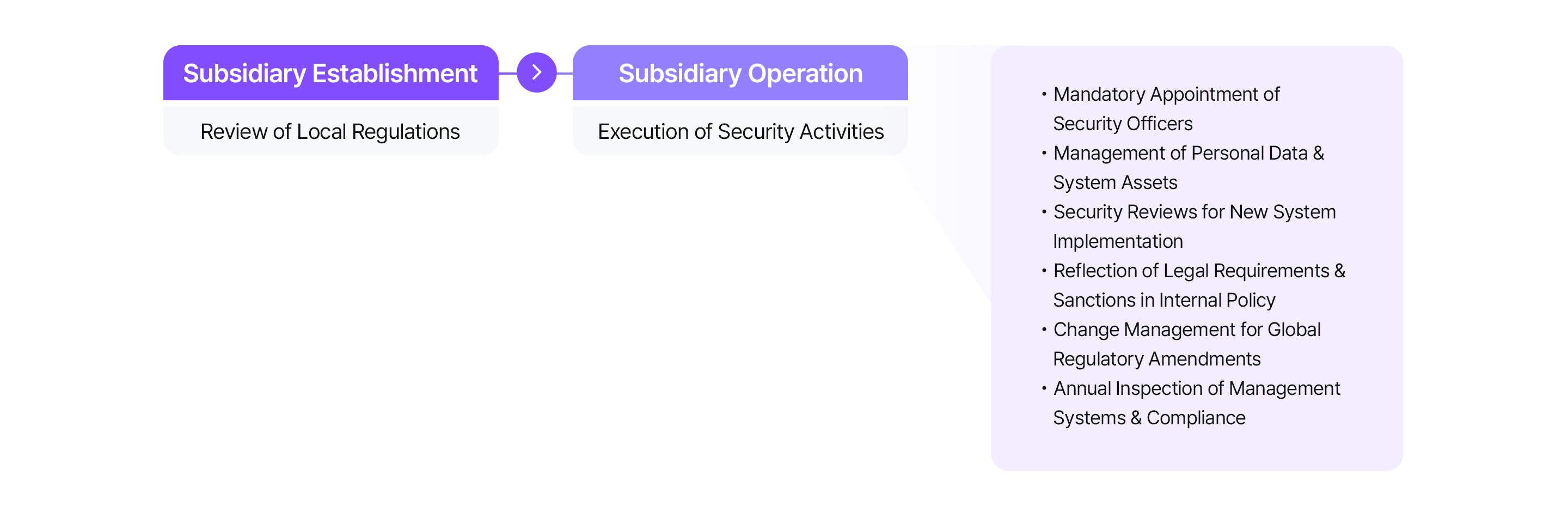 LG CNS manages global security for its overseas subsidiaries from their establishment through to their operation. We comply with global security regulations such as the EU General Data Protection Regulation (GDPR) and Vietnam’s Personal Data Protection Law, and works closely with its overseas subsidiaries to respond proactively to global security threats.