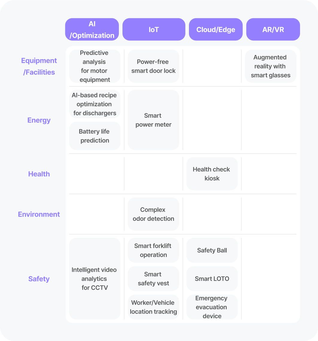 LG CNS delivers end-to-end services that integrate DX technologies to enable informatization, automation, and intelligent control to encompass safety, health, environment, chemical substance management, and regulatory compliance.