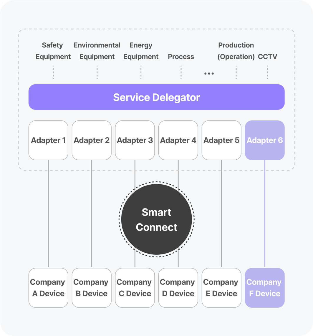 Integrating systems with various devices and protocols can be technically complex. Different protocols involve different data transmission formats, messaging schemes, and connection settings, making standardization and integration challenging. The "Smart Connect" adapter enables easy connection and monitoring without additional development simply by adding the specific adapter needed for each device.