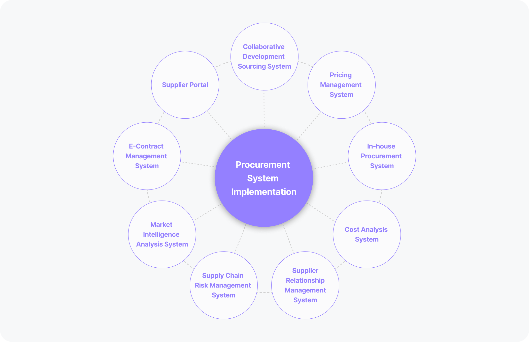 LG CNS designs and builds procurement and supplier management systems, covering development procurement, strategic sourcing, and material procurement processes.