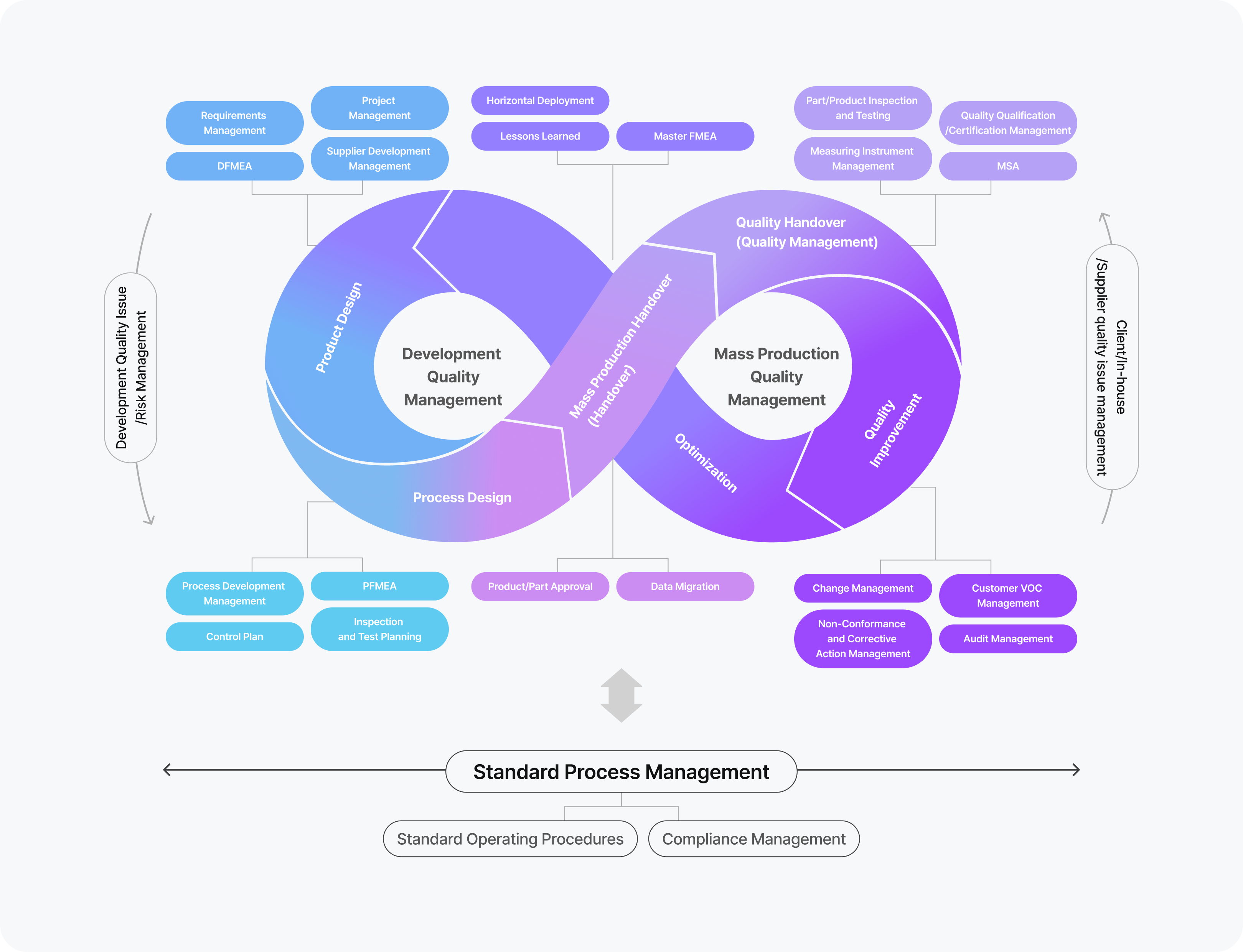 SINGLEX QMS is an integrated mass production quality management service that strengthens the connection between development and mass production, systematically manages issues and changes, and enhances overall quality levels. By offering over 30 modules—including inspections, issue management, change management, audits, and Measurement System Analysis (MSA), it enables systematic quality management across various industries, effectively increasing the quality competitiveness of enterprises.