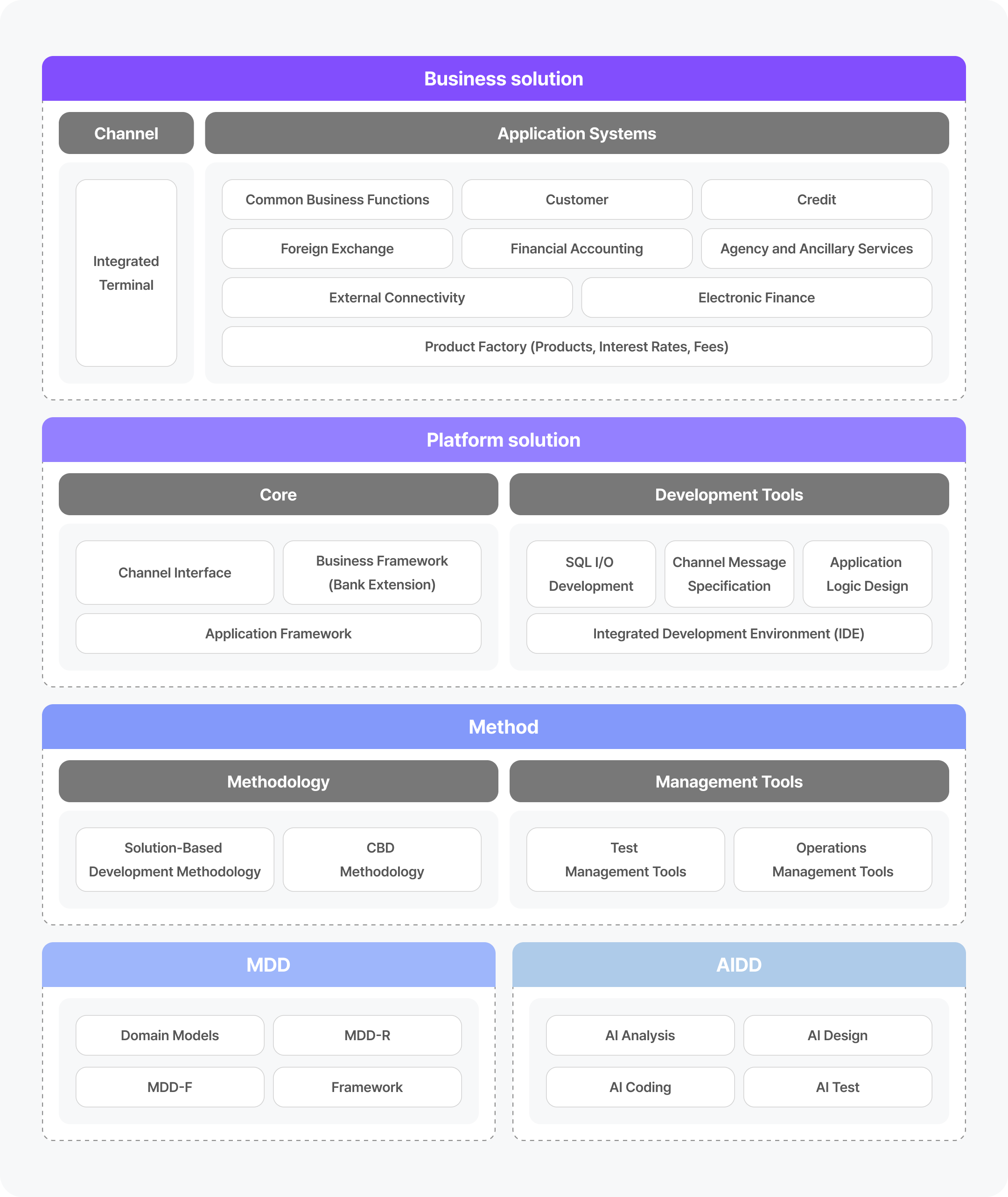 It supports the entire credit card business process and is designed as a model-based solution with scalable architecture and excellent development efficiency. The system is also integrated with finance-specialized UI solutions and FEP solutions tailored for card business operations.