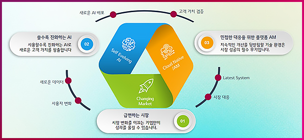 클라우드 위에 진정한 고객 가치를 이끌어 내는 AM을 통해 시장에서 성공하는 서비스를 만들 수 있습니다.