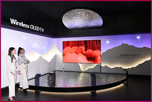 LG전자는 선이 필요 없는 TV인 ‘LG 시그니처 올레드 M’를 선보였는데요. 세계 최초로 4K 해상도, 120헤르츠(㎐) 규격 영상 전송을 지원하는 무선 솔루션이 탑재되어 선 없이도 TV를 시청할 수 있습니다. LG 시그니처 올레드 M은 특출난 기술력을 인정받아 CES 공식 어워드 파트너인 엔가젯(Engadget)이 선정한 홈시어터 부문 최고상을 수상하기도 했습니다.