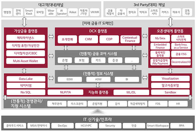 -금융 코어시스템 등 전통적 시스템은 금융 업무 지능화 및 자동화를 통한 업의 본질 강화에 집중합니다.