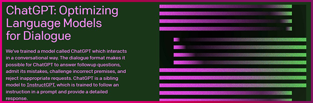인공지능 챗봇 챗GPT(ChatGPT)가 작년 11월 30일 (한국 시각 12월 1일) 출시 이후 두 달 만에 사용자 수 1억 명을 돌파했습니다. 챗GPT는 마이크로소프트가 투자한 오픈AI(Open AI)의 챗봇인데요. 1750억 개에 달하는 매개변수로 학습한 초거대 인공지능 GPT-3.5를 기반으로 하고 있습니다. 챗GPT는 생성형 인공지능으로, 이용자 요구에 따라 서로 다른 결과물을 생산하는데요. 텍스트·오디오·이미지 등 다양한 콘텐츠를 활용해, 유사하지만 독창적인 내용물을 만들 수 있습니다. 검색창에 원하는 질문을 입력하면 마치 사람처럼 주저 없이 답변을 합니다. 시, 소설, 에세이, 리포트, 설명서 등 어떤 형식에도 그에 맞는 대답을 할 수 있습니다.
