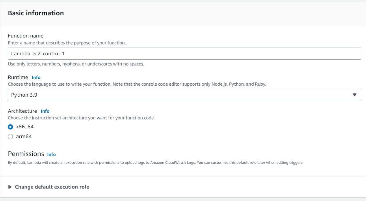 #(4) IAM role is required with permission to start and stop EC2 instances and write to CloudWatch logs.