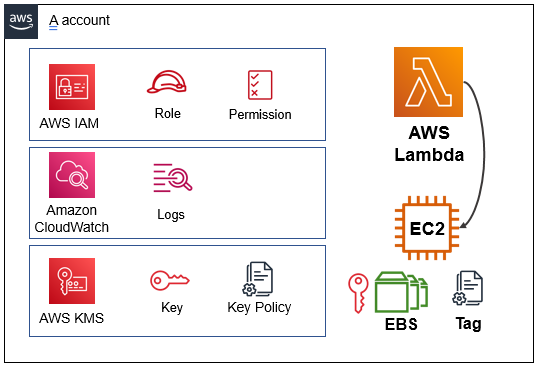EBS가 암호화된 경우 EC2의 Start를 위해서 KMS의 사용 권한이 필요한 것입니다. 따라서 Lambda도 KMS에 사용 권한을 보유해야 합니다.