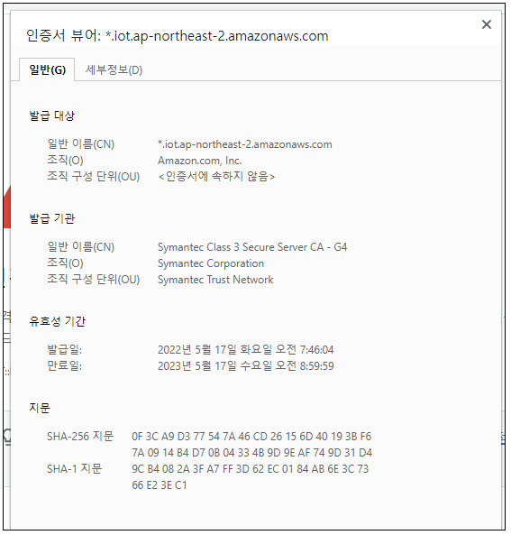 (1) AWS IoT Core는 원래 Symantec에서 발급된 인증서를 사용하는 서비스 엔드포인트를 사용하고 있었다.