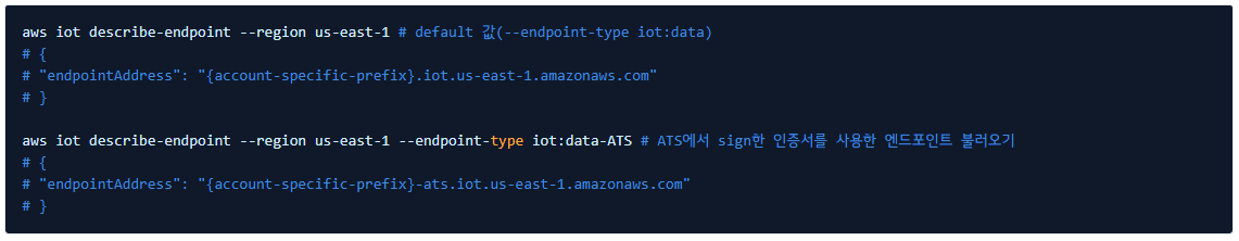 위와 같이 많은 기업에서 신뢰하지 않게 되면서 새로운 서비스 엔드포인트 https://{account-specific-prefix}-ats.iot.{region}.amazonaws.com 을 생성하였고 이쪽을 사용하도록 권고하고 있었습니다.
