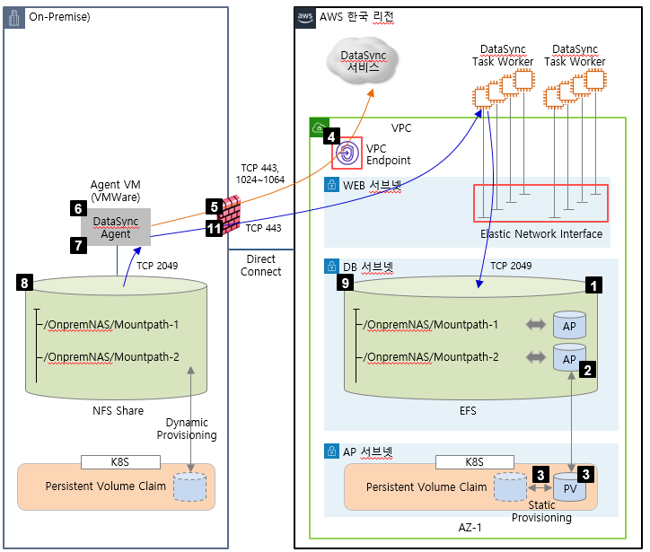 이번에는 On-prem의 NAS 스토리지를 AWS의 EFS로 이관하는 적용 예시를 기반으로 설명해 보겠습니다.