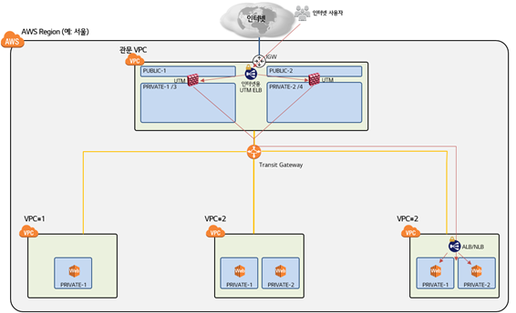 추가적인 보안 요구 사항이 있을 경우 NACL이나 SG 외에 3rd-party UTM 을 구성하여 보안 제어를 할 수 있습니다. 또한 AWS Network Firewall이나, AWS Gateway Load Balancer 같은 새롭게 추가된 서비스들을 활용하여 더욱 유연한 방화벽 아키텍처를 AWS 상에서 설계할 수 있습니다.