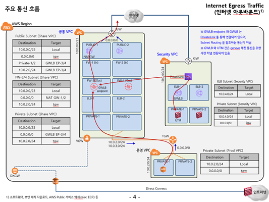 이번 포스팅에서는 인터넷에 연결된 애플리케이션들에 대한 인바운드/아웃바운드 트래픽을 보호하기 위해 다양한 방화벽 옵션에 대한 네트워크 구성 방안들을 소개해 보고자 합니다. 즉, 인터넷으로부터의 Ingress flow(예: Internet 에서 VPC로)와 Egress flow(예: VPC에서 인터넷으로)의 구성 아키텍처에 대하여 다룹니다. East/West(즉, VPC에서 VPC로 또는 VPC에서 온프레미스로) 아키텍처는 제외하며, 웹 방화벽(AWS WAF 또는 3rd-party WAF) 구성은 포함하지 않습니다.