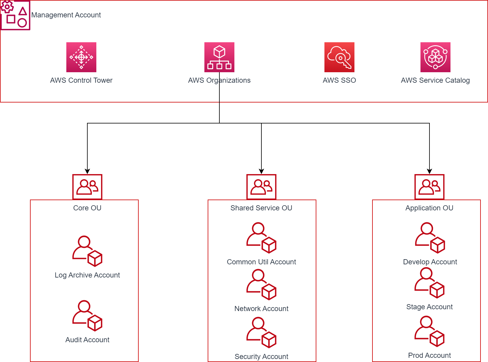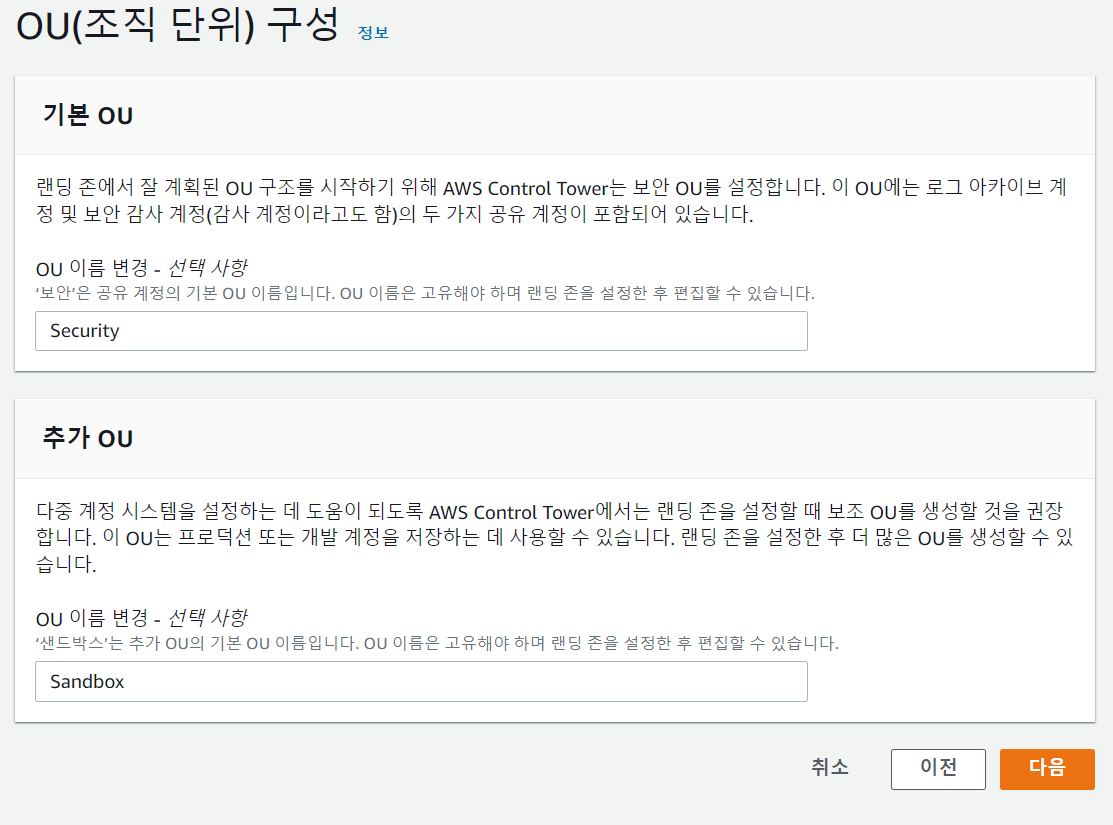Shared Service OU와 Accplication OU는 프로젝트의 요구에 맞게 구성을 하시면 되는데요.