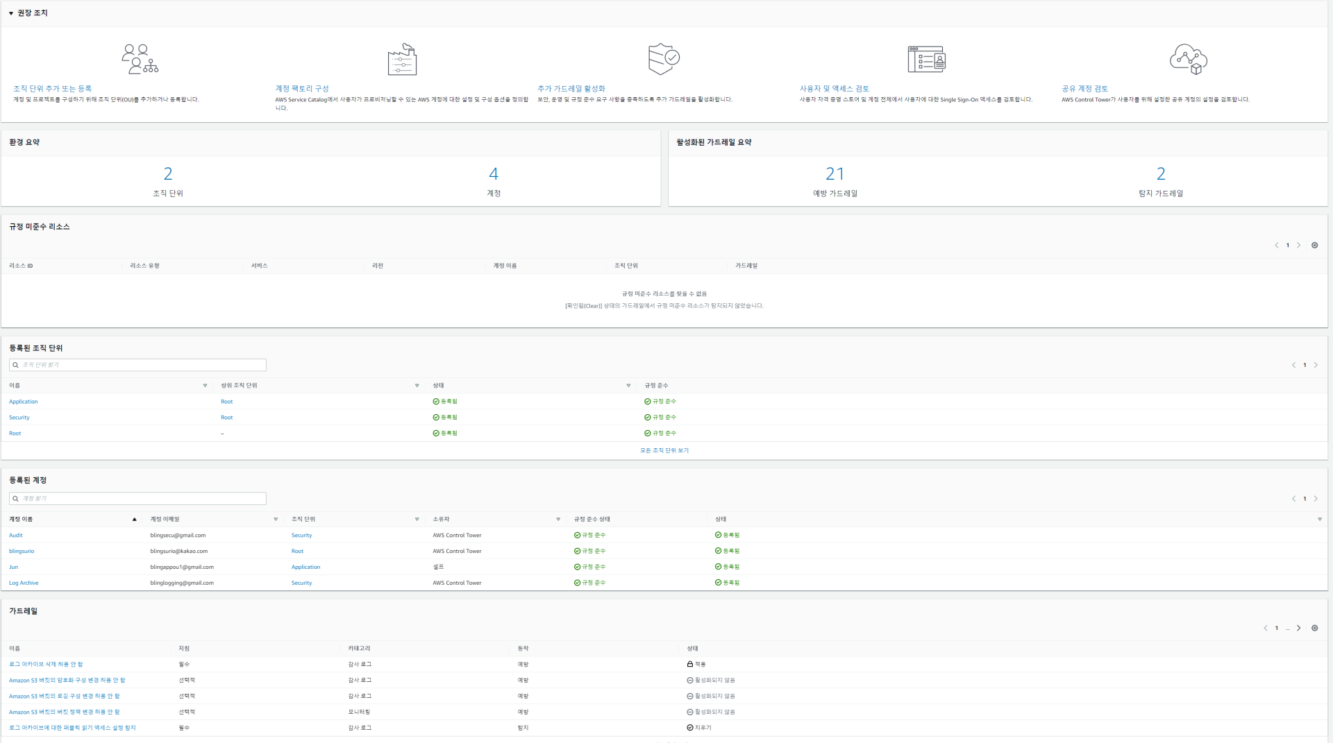 이 문서에는 “새 조직에서의 AWS Control Tower 시작”으로 테스트했습니다.