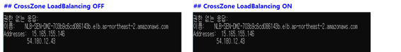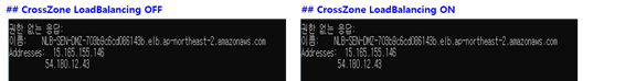 Cross-zone load balancing의 비활성화/활성화 관계없이 서비스 사용자는 모든 가용 영역으로 트래픽을 보내며, 모든 가용 영역의 Target이 Healthy 상태이므로 서비스 제공에 문제가 없습니다.