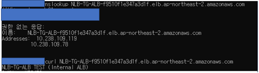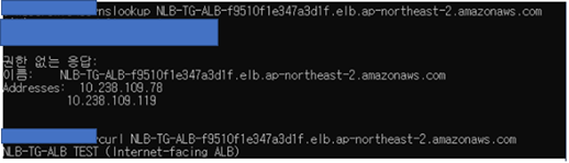 ● 설정 완료 후 Network LoadBalancer와 Application LoadBalancer의 서비스 위치(internet-facing or Internal)에 따라 서비스 정상 동작 여부 테스트
