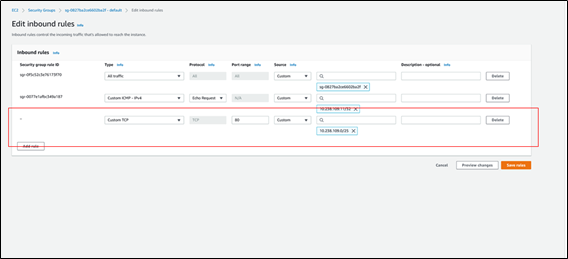 ● Application LoadBalancer에 할당된 Security Group으로 Source 접근을 제어하며, 아래와 같이