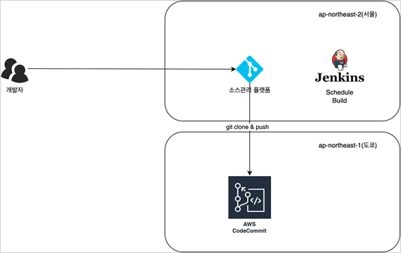 복제 실행은 jenkins를 이용했고, 스케줄을 지정하여 주기적으로 실행했습니다.