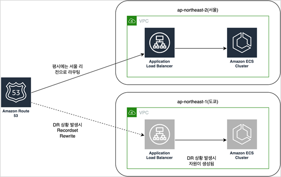 사용자가 접속시 사용하는 도메인을 DR 상황에서 도쿄 리전에서도 사용을 해야 합니다.