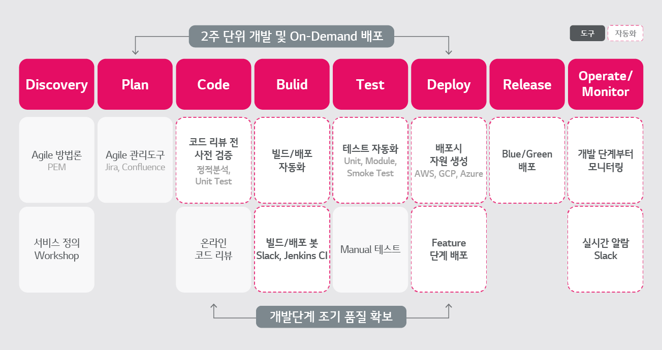 그렇다면 LG CNS가 어떻게 테스트 자동화를 적용했는지 단계별 테스트 자동화 기법을 통해 알아보겠습니다.