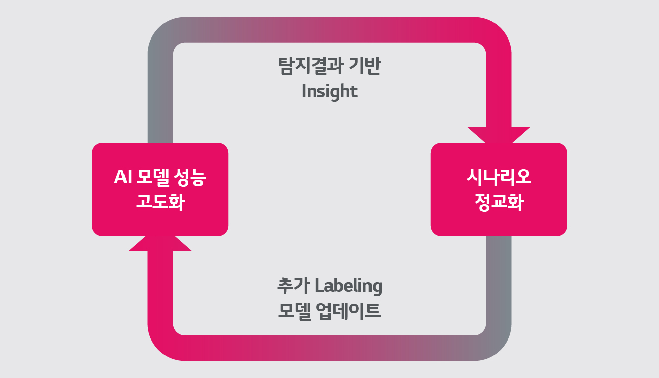 3) AI 모델 적용은 일회성 구축으로만 끝내는 것이 아닙니다. 운영 시 추가로 도출되는 점검 노하우를 반영해 추가 라벨링과 모델 업데이트를 관리해야 합니다. 또한 AI 탐지 결과 기반의 추가 인사이트로 시나리오를 정교화할 수 있는 플랫폼 구축이 필요한데요. 이를 통해 AI 모델의 성능 고도화와 시나리오 정교화가 선순환 구조를 이루며, 지속해서 개선될 수 있습니다. 결과적으로 점검 업무 자동화가 가능한 수준으로 나아갈 수 있는 것이죠.