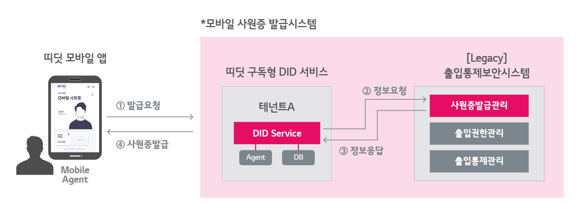 띠딧은 기존의 레거시(legacy, 정보 시스템에서 기존의 낡은 소프트웨어를 말함) 사원증 발급시스템과 연계해 모바일 사원증으로 새롭게 발급할 수 있습니다.