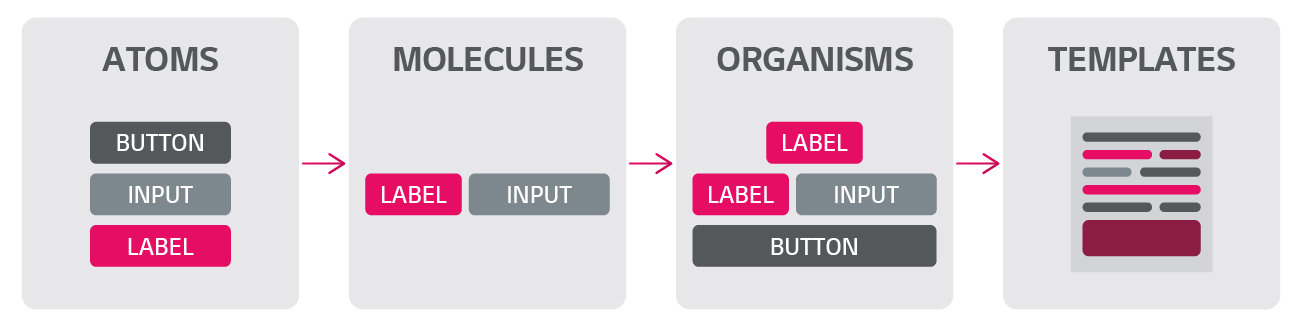LG CNS 빌드센터에서 다루는 모던 프론트엔드는 대개 규모가 큰 편입니다. 프로젝트에서 최소한의 커뮤니케이션 비용으로 여러 개발자가 효율적으로 협업하기 위해서는 개발자 개개인이 항상 가독성과 유지 보수성을 고려해 코드를 작성해야 하는데요. LG CNS는 이를 위해 Atomic Design (복잡한 화면을 가장 작게 분해할 수 있는 단위까지 나눠, 각 요소 간 컴포넌트 재활용성을 높이고 복잡한 화면 구성을 쉽게 처리하는 UI 설계 방식) 패턴을 기반으로 컴포넌트를 공통화해 사용하고 있습니다. 이를 통해 코드의 중복을 최소화할 뿐만 아니라 읽기 쉽고, 고치기 쉬운 코드를 작성할 수 있습니다.
