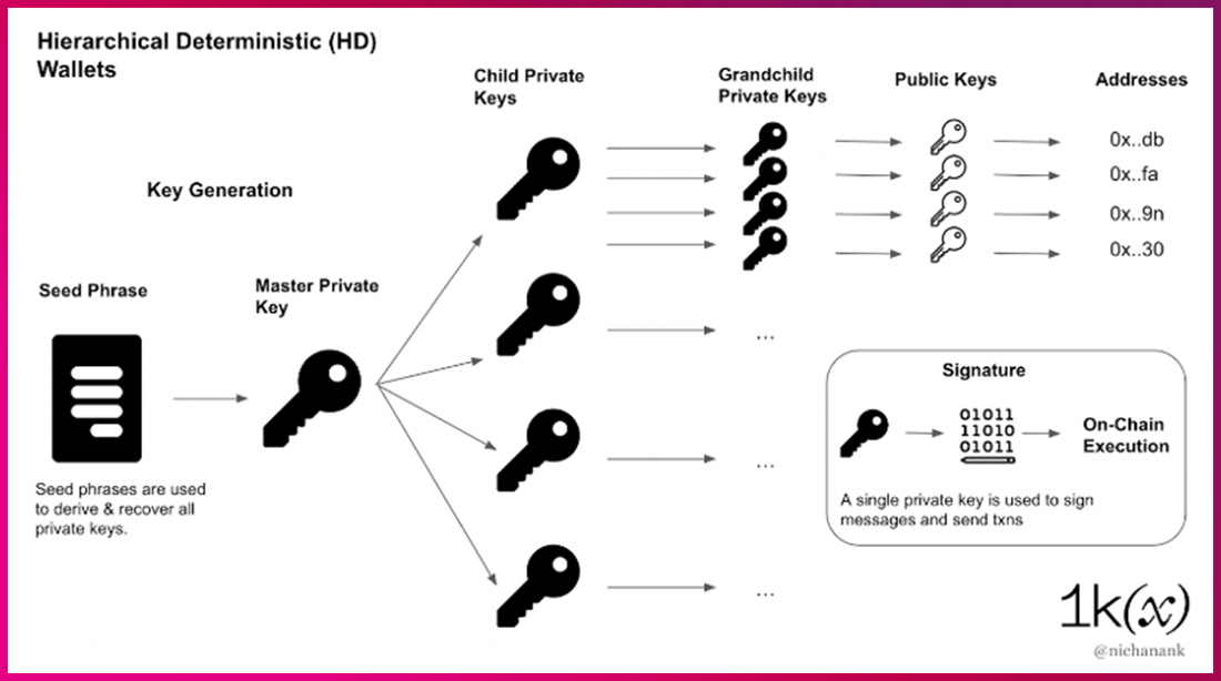 Web3 여정을 처음 시작한 사용자는 Web3 세상에서 사용할 공개키 주소를 한 개 이상 생성해야 합니다. 이 주소는 암호화 알고리즘을 통해 생성된 개인 키와 매핑되는 공개 키의 주소인데요. 현재 Web3 환경에서는 블록체인 프로토콜별로 ECDSA(Elliptic Curve Digital Signature Algorithm) 기반의 secp256k1 커브 알고리즘을 사용하는 이더리움, EdDSA(Edwards-Curve Digital Signature Algorithm) 기반 ed25519 커브 알고리즘을 사용하는 Solana 등 서로 다른 암호화 알고리즘이 사용되고 있습니다.