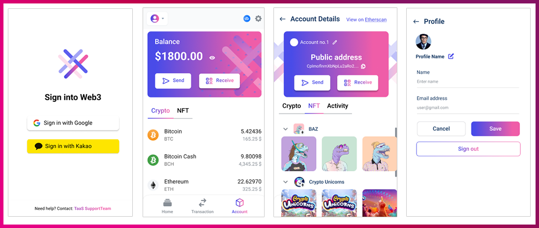 LG CNS 개인용 지갑은 OAuth 2.0 토큰을 활용해 Web2 친화적 UX를 제공합니다. 로그인 정보와 연계된 멀티 프로필 관리 기능, 트랜잭션 전송 시 메모를 남길 수 있는 기능 등을 통해 사용자들이 Web3 환경에서 느낄 수 있는 괴리감을 최소화하기 위해 노력하고 있습니다.