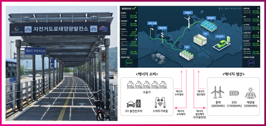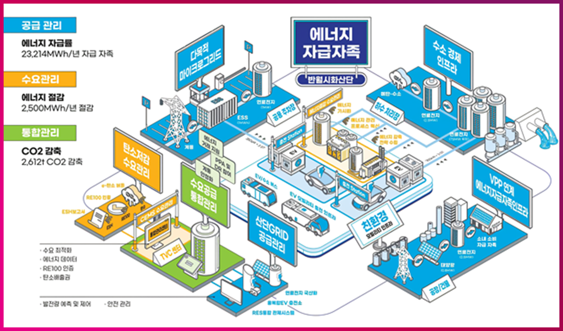 도시의 에너지 사용 관점에서도 탄소 배출량 증가의 주요 원인인 석탄과 LNG 발전의 비중이 큰 중앙공급식 에너지원의 사용을 줄여 나가야 하는데요. 이를 위해 에너지의 실시간 수요와 발전량 예측 데이터를 기반으로 에너지를 자체적으로 생산, 저장, 소비하는 마이크로그리드(Microgrid, 소규모 지역에서 전력 자급자족을 할 수 있게 하는 작은 단위의 스마트그리드 시스템)를 늘리고, 재생에너지, 그린 수소, 에너지저장장치(ESS, Energy Storage System) 등의 분산 에너지원 사용도 적극 확대해야 합니다.