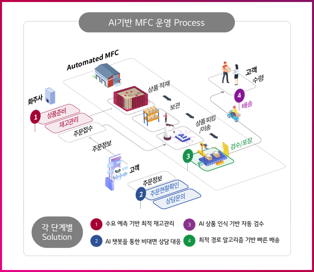 아직까지는 개별 센터에서도 일부 영역에서의 AI 도입이 시도되고 있으나 앞으로는 AI가 핵심 경쟁력이 되는 AI 물류센터 구축이 검토되고 구현될 것으로 예상됩니다. 특히 수요가 높아지고 있는 도심물류센터(MFC, Micro Fulfillment Center)에서의 AI 역할이 기대됩니다.