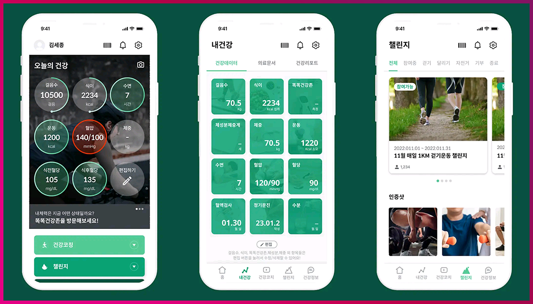 세종시는 ‘세종 똑똑건강’이라는 시민 맞춤형 건강관리 앱을 서비스하고 있습니다. 이 앱은 세종시 내 헬스케어존과 연계해 건강 정보를 측정한 후 올바른 건강 상식을 알려주는 건강 코칭 서비스를 제공하는데요. 걸음 수 기부 등 시민 참여를 유도하는 지역 챌린지를 열고, 건강 활동으로 쌓은 포인트를 지역화폐인 ‘여민전’으로 환전해서 쓸 수 있도록 통합해 모든 시민의 건강 활동 개선에 활용하고 있습니다.