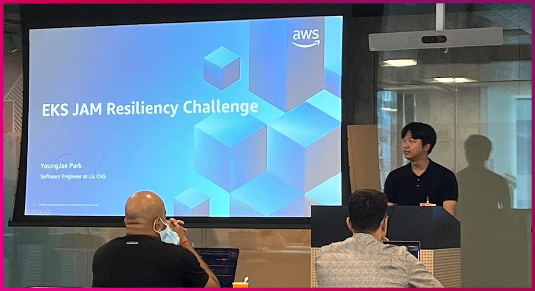 최근 LG CNS와 AWS는 싱가포르에서 글로벌 기업 고객을 대상으로 ‘Amazon EKS JAM for AM’ 핸즈온(Hands On) 워크샵을 진행했습니다. LG CNS 클라우드 전문가들이 보안(Security), 회복 탄력성(Resiliency), 관찰 가능성(Observability, 시스템의 내부 동작 상황을 외부에서 알 수 있는 상태) 등의 EKS 관련 기술을 고객사에 설명하고 실습을 진행했습니다. 교육에 참가한 고객들은 “진행이 매끄럽고, 유익하며 AWS 서비스를 학습하기 좋은 포맷이었다”며, “향후 더 다양한 Task를 경험해 보고 싶다”는 의견을 남겼습니다.