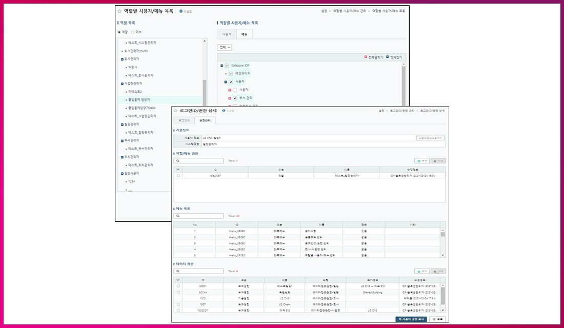 Rest API(Rest 아키텍처 스타일의 제약 조건을 준수하고 Restful 웹 서비스와 상호 작용할 수 있도록 돕는 API) 기반으로 구축된 다양한 보안 및 업무 시스템과 연계해 시스템의 기능도 확장시켰는데요. 외부 시스템과의 연계로 인해 취약해질 수 있는 권한 관리도 계정별 API 권한을 별도로 관리해 접근 가능한 API만 서비스를 이용할 수 있습니다.