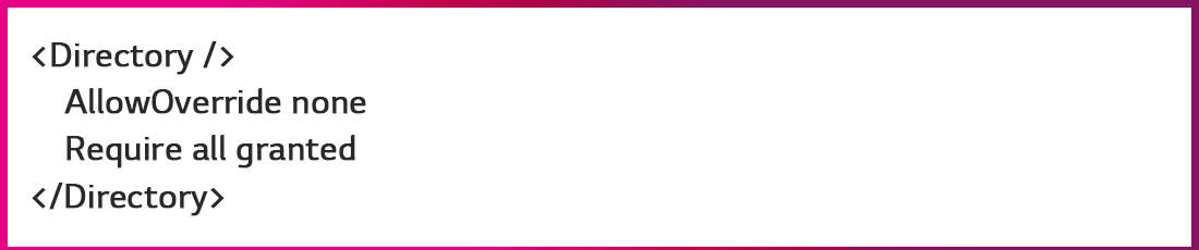 http://[취약한 버전의 아파치 서버]/cgi-bin/%2e%2e/%2e%2e/%2e%2e/etc/passwd`%2e%2e(..)에 대한 경로가 제대로된 웹 URL 형태로 인식되지 못한다면 결국 시스템 내 /etc/passwd에 접근이 가능해집니다. 해당 취약점은 httpd.conf에서 디렉터리에 대한 접근 권한 설정 부분이 취약한 경우 발생합니다. Require 권한의 모든 엑세스가 열려있는 상황에서 해당 CVE(Common Vulnerabilities and Exposure) 취약점이 발생합니다.