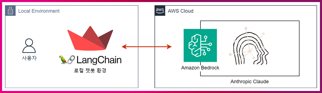 내 로컬 환경에 Python을 사용한 챗봇 환경을 생성하고, Amazon Bedrock API를 통해 나의 질문에 대한 응답을 받는 구조입니다.