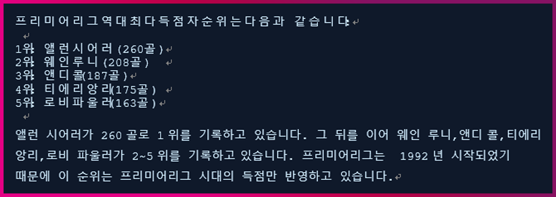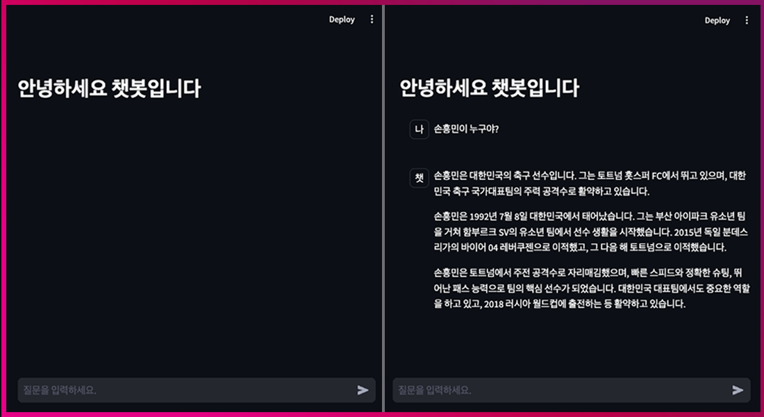 질문과 답변을 통해 챗봇이 정상적으로 동작함을 확인할 수 있습니다.