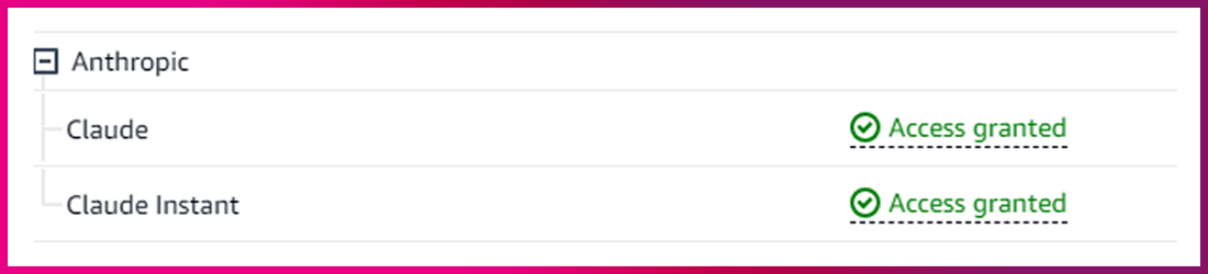 해당 단계를 완료해야 Amazon Bedrock을 통해 Anthropic Claude 모델을 사용할 수 있는 상태가 됩니다.