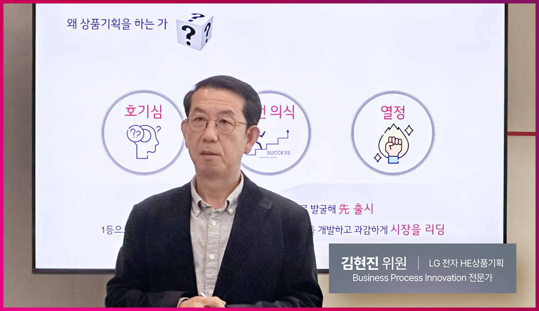 프로그램 현장에서는 상품기획 업무를 맡아온 LG전자 BPI(Business Process Innovation) 전문가 김현진 위원이 ‘상품기획의 본질과 함께 WIN상품기획의 자세한 프로세스, 그리고 매뉴얼에서 볼 수 없는 이야기’에 대한 노하우를 전달했습니다.