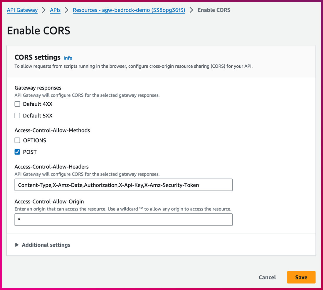 – Access-Control-Allow-Methods 항목에서 POST를 체크한 뒤 “Save”