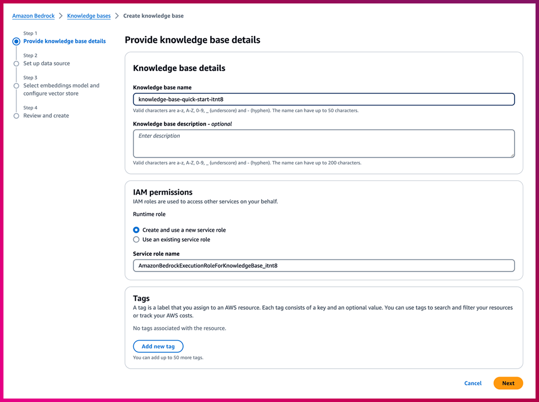 4) Amazon Bedrock Knowledge base 구성