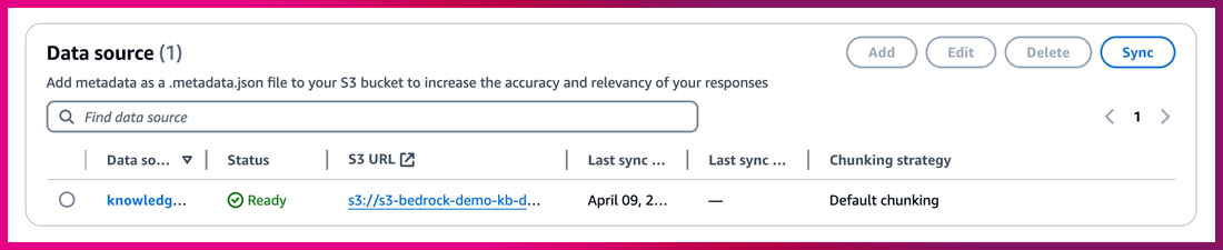 – Review and create ➔ “Create knowledge base”를 선택하면, Knowledge bases 구성이 완료된 것입니다.