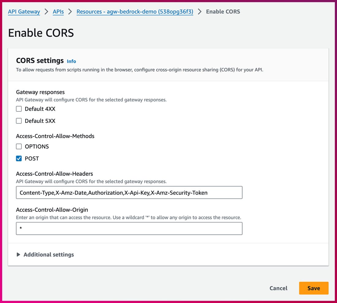 – Access-Control-Allow-Methods : Check POST ➔ “Save”