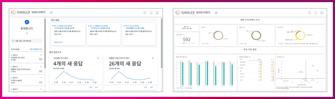 다양한 업무를 하나의 플랫폼에 통합한 Enterprise SaaS, SINGLEX는 추가 비용을 지불하지 않아도 새로운 기능과 지속적인 업그레이드를 지원합니다. 파라다이스시티 CX팀은 앞으로도 라이브러리, 보고서, 대시보드, 위젯 등 SINGLEX WIN서베이의 풍부한 기능과 서비스를 활용해 데이터 기반의 의사결정을 이끌어내고, 업무 효율성을 높여갈 계획입니다.