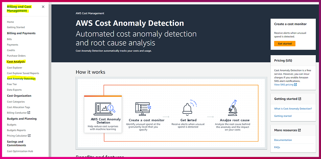 (1) Billing and Cost Management ➔ Cost Analysis ➔ Cost Anomaly Detection